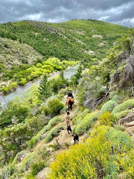 Nach einem leckeren Frühstück steigen Sie wieder in den Sattel und reiten bergab und für eine gute Strecke am Ufer des Flusses Foyel entlang. Im Laufe des weiteren Abstiegs kommen Sie an zwei Bergseen vorbei und folgen dann dem Pantanoso Fluss, der in den Chubut einmündet. Ein kurzes Stück flussabwärts wird das Lager für die Nacht aufgeschlagen.