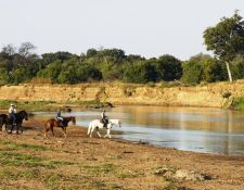 Auch heute verbringen Sie viele Stunden im Sattel auf der Suche nach Abenteuern, am Morgen sitzen Sie für ca. 4 Stunden und am Nachmittag nochmals ca. 2 Stunden im Sattel. Sie reiten durch abwechslungsreiche Landschaften, durch dichte Uferwälder, ebene Gebiete mit Buschwerk und Savannen mit vielen Schirmakazien. Hier sind die Chancen groß, Elefanten und einer Vielzahl Antilopen zu begegnen und in der Nähe der Flüsse viele verschiedene Vogelarten zu sehen. Am Nachmittag reiten Sie zu den ungewöhnlichen Felsformationen, wo Wasserbock, Klippspringer und Adler zu Hause sind.