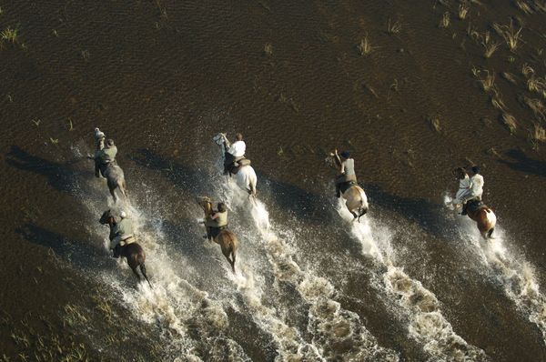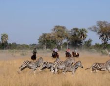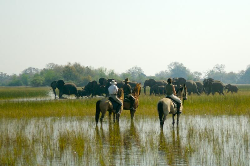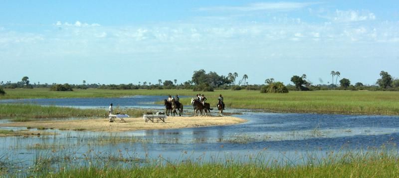 Das Okavango Delta ist ein einmaliges Biotop und Naturwunder unserer Erde. Der Okavango-Fluss entspringt in den Bergen von Angola und bildet das größte Binnendelta der Welt um dann in der Kalahari-Wüste zu versickern. Das Leben im Delta wird von der Flut und den damit verbundenen unterschiedlichen Wasserständen bestimmt. Die jährliche Flut kommt normalerweise im Mai-Juni und bis in den September hinein ist der Wasserstand rund um das Camp relativ hoch. Ab Oktober zieht sich das Wasser langsam zurück und die Temperaturen steigen. Von Dezember bis Februar fällt Regen und es ist heiß. In diesem Paradies finden Sie eine besonders große Vielfalt und Konzentration an Tier- und Pflanzenarten und Sie werden ein ‚neues Afrika’ kennenlernen. Von Landrover aus sehen Sie Afrika, vom Pferderücken aus riechen und fühlen Sie Afrika besonders intensiv. Zu Pferde sind Sie Teil des Geschehens im Busch und nicht mehr nur Beobachter und bewegen sich in einem Gebiet, dass nur von wenigen Menschen betreten wurde.