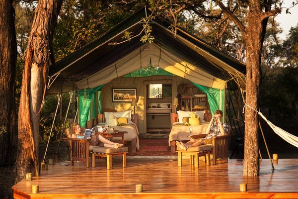 Camp Macatoo besteht aus 8 Zelten, einem gemütlichen ‚Lounge / Restaurant-Zelt’, einer Aussichtsplattform für Sundowners mit kleinem Pool. Sie wohnen in großen und luxuriösen Safari-Zelten mit privater Dusche/WC und einer große Veranda. Bei längeren Aufenthalten von März bis Oktober Übernachtung in einem Baumhaus möglich.