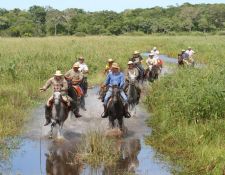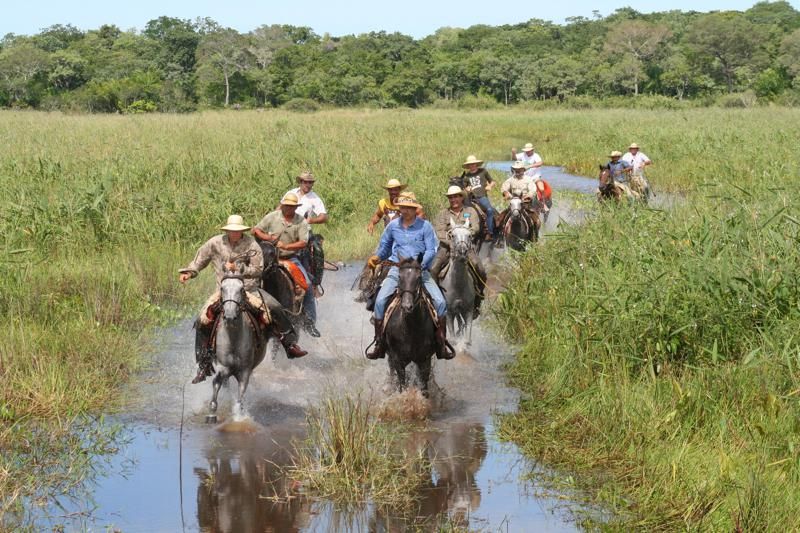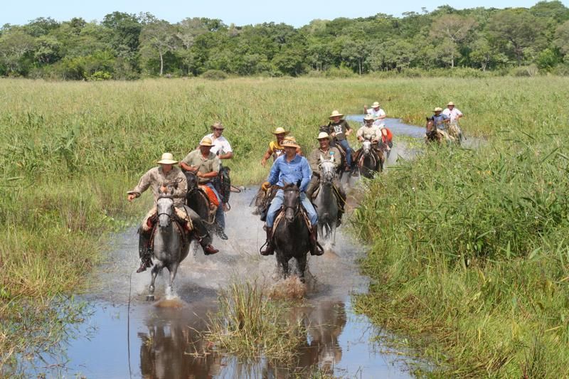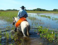 Der Pantanal (= Sumpf auf portugiesisch) ist mit ca. 240.000 km² das größte Binnenland-Feuchtgebiet der Erde und gilt als eines der letzten unberührten Naturwunder. Das kaum erschlossene Gebiet liegt zwischen den Bundesstaaten Mato Grosso und Mato Grosso do Sol im Dreiländereck mit Paraguay und Bolivien. Von November bis April regnet es und ab Januar stehen große Gebiete meterhoch unter Wasser, weil die Niederschläge nur langsam nach Süden abfließen können. Von April bis Juni sinkt der Wasserspiegel weil keine Regen mehr fällt und sehr viel Wasser verdunstet. Die außergewöhnliche Vielfalt an Lebensräumen macht die riesige Ebene so einmalig: von Dschungel über Trockenwälder, Savannen, Steppen bis hin zu Seen und mächtigen Flüssen. Der Pantanal gilt nicht nur bei den Einheimischen als moderne Arche Noah mit 123 Säugetier- und 265 Fischarten, mehr als 600 Vogelarten und dazu unzählige Reptilien und beinahe 2.000 Pflanzenarten. Nicht zu vergessen die ca. 5 Millionen Rinder, die von den Pantaneiros (Gauchos im Pantanal) mit Hilfe von Pferden und Maultieren von Weide zu Weide getrieben werden. Eine Reittour in dieser Region ist schon fast eine Expedition.