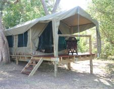 Drei Nächte schlafen Sie im Two Mashatus Camp mit 5 geräumigen Zelten, die auf einer erhöhten Holzplattform stehen, mit privater Dusche und einer Toilette mit Wasserspülung. Im Schatten eines etwa 100 Jahre alten Mashatu-Baumes befindet sich der Ess-Bereich und in der Lounge gibt es bequeme Sofas und Hängematten zum Relaxen. Ausserdem hat es einen kleinen Pool zur Erfrischung zwischen den Ritten.