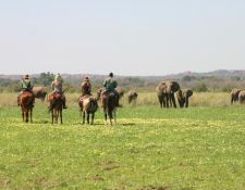 Der heutige Ritt schlängelt sich durch die wunderschönen Ebenen zwischen den Flüssen Mojali und Majele. Sie reiten durch ausgiebige Uferwälder und viele Böschungen hinauf und wieder hinunter. Dieses Gebiet ist reich an Wildtieren, bietet spektakuläre Ausblicke auf das Tal des Limpopo-Flusses und es ergeben sich unterwegs meist viele schöne Fotomotive.