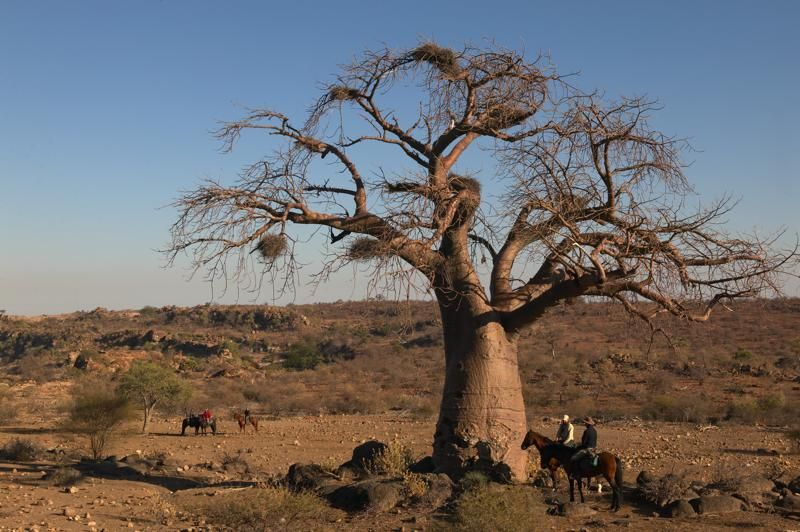 Am Morgen unternehmen Sie einen kürzeren Ritt und erkunden die imposanten Sandsteinformationen der Gegend. Sehr beeindruckend ist die berühmte Mauer des Salomon. Die natürliche Formation wirkt wie von Menschen geschaffen, wurde jedoch von der Natur geformt. Zwischen diesen Hügeln, wo die mächtigen Flüsse Limpopo und Motloutse zusammenfließen, finden sich viele Zeugnisse von uralten Siedlungen.