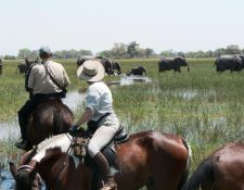 Das Okavango Delta ist ein einmaliges Biotop und Naturwunder unserer Erde. Der Okavango-Fluss entspringt in den Bergen von Angola und bildet das größte Binnendelta der Welt und versickert und verdunstet dann in der Kalahari Wüste. Das Leben im Delta wird von der Flut und den damit verbundenen unterschiedlichen Wasserständen bestimmt. Die jährliche Flut kommt normalerweise im Mai-Juni und bis in den September hinein ist der Wasserstand relativ hoch. Ab Oktober verschwindet das Wasser langsam, es versickert im Boden und verdunstet. Ab Oktober & November steigen die Temperaturen und es ist mit Regenschauern zu rechnen. Zwischen Dezember und Februar fällt Regen und es wird heiß. Das ist auch die Zeit, in der viele Antilopen geboren werden. Zu den spektakulärsten Erfahrungen im Okavango Delta zählt zweifelsohne eine Reitsafari mit professionellem Guide und erstklassigen Pferden. Zu Pferde sind Sie nicht mehr Beobachter, sondern beteiligt am Geschehen im Busch. Sie bewegen sich in ursprünglicher Wildnis, die kaum ein Mensch vor Ihnen betreten hat und können sich dem Wild bis auf wenige Meter nähern. Sie reiten innerhalb einer privaten Konzession von ca. 2.500 qkm im westlichen Teil des Okavango Deltas, an der Grenze zum Moremi Game Reserve. In diesem Gebiet befinden sich drei große Fluss-Systeme und damit ist immer reichlich Wild vorhanden.