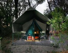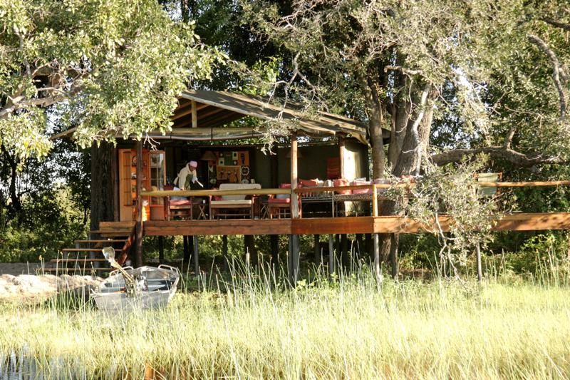 Camp Kujwana besteht aus 6 Zelten am Xudum Fluss, die zwei Riversuites sind besonders großzügig mit spektakulärer Aussicht (Aufpreis), alle haben eine private Dusche mt WC und Solar-Strom, sehr gemütlich und komfortabel