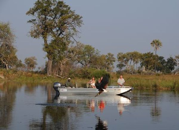 Der Ruf des Fischadlers in der Baumkrone weckt Sie bei Sonnenaufgang und es gibt Tee & Kaffee, dann steigen Sie noch einmal in den Sattel. Sie reiten durch die weiten Ebenen und begegnen Gnus, Herden von Burchell-Zebras und verschiedenen Antilopen. Das Gelände bestimmt das Tempo und Sie genießen die gute Morgenluft. In den Schilfgebieten erwachen riesige Kolonien von Störchen, Reihern, Gänsen und vielen andere Vögeln. Sie reiten durch und entlang unzähliger Wasserwege mit herrlichen Uferwäldern und erreichen Camp Macatoo am späten Vormittag. Dort angekommen heißt es den Koffer packen und sich zu verabschieden und mit einem Picknick-Lunch im Gepäck werden Sie zum Airstrip gebracht und fliegen nach Maun.