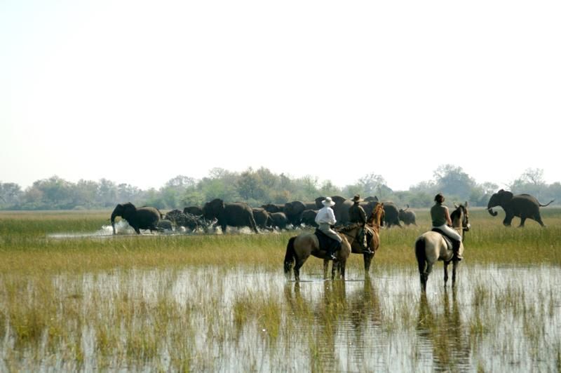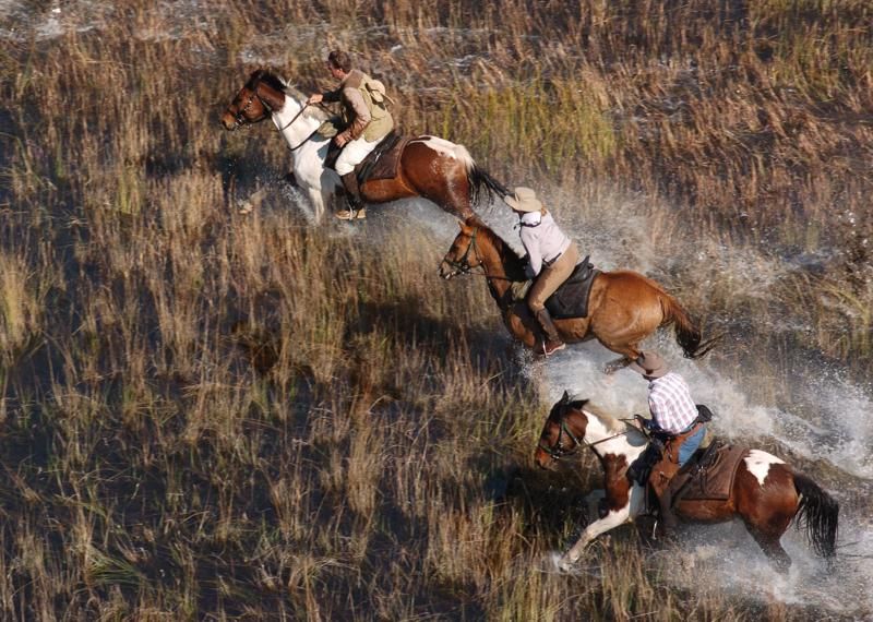 Sie beginnen den Tag mit einer heißen Tasse Kaffee oder Tee im Zelt und nach einem leichten Frühstück verlassen Sie das Camp zu einem langen Ritt. Je nach Jahreszeit und Wasserstand schwimmen Sie durch Kanäle im Delta, galoppieren auf sandigen Ebenen oder folgen Giraffen, Zebras, Antilopen, Elefanten oder Büffel durch mannshohes Gras. Zum Lunch sind Sie zurück im Camp und können die Siesta am Pool oder auf Ihrer Veranda genießen. Der abendliche Ritt ist gemütlich und langsamer mit Zeit zum Fotografieren. Mit etwas Glück können Sie Raubtieren wie Leoparden begegnen und Gruppen von Elefanten und Flusspferden unterwegs beobachten. Vielleicht überrascht Sie das Team vom Camp auch mit einem Sundowner oder Dinner im Busch an einem besonders schönen Platz.