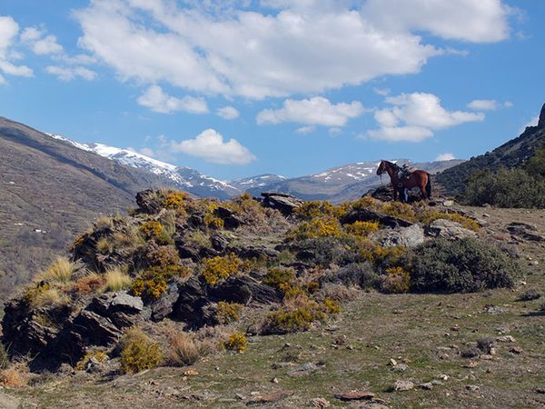 Die Contravieasa Bergkette liegt zwischen den Bergen der Sierra Nevada und dem Mittelmeer. Wegen des nahen Meeres ist das Klima sehr mild, vor allem im Frühling und im späten Herbst. Das Thermometer fällt nur selten unter 15°C und bewegt sich im Mai bei etwa 25°C. Der Wanderritt führt hinunter in die niedrigeren Abhänge der Alpujarra Berge, wo Mandeln und Wein angebaut werden. Die andere Höhenlage sorgt für einen wesentlichen Klimawechsel. In der Gegend werden hauptsächlich, Mandel- und Feigenplantagen sowie Weingärten angelegt und bearbeitet. Hier hat sich im Laufe der Jahrhunderte im täglichen Leben kaum etwas geändert. Auf den kleinen Feldern ziehen Maultiere und Ochsen den Pflug und mit Pferden und Maultieren werden noch heute viele der Transporte abgewickelt. In der Contraviesa beginnt der Frühling schon im Februar und die wilden Blumen blühen bis Ende Mai. Der Übergang vom Herbst in den Winter ist eine wunderbare Zeit für einen Besuch der Region, denn es wird selten kalt.