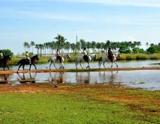 Wie eine Perle geformt liegt die Insel Sri Lanka (ehemals 'Ceylon' genannt) wenige Kilometer vor der südöstlichen Küste des indischen Subkontinents im Indischen Ozean. Die Kulturgeschichte der Insel reicht zurück bis in prähistorische Zeiten und die sechs UNESCO Weltkulturerbe-Stätten geben einen guten Einblick. Der Name Sri Lanka bedeutet 'strahlend schönes Land' und es gibt nur wenige Länder auf der Erde, die auf relativ kleinem Raum so viele Facetten landschaftlicher Schönheiten aufweisen. Die Insel der Teeplantagen und Gewürze ist eine abwechslungsreiche Destination für Reiter. Sie reiten entlang einsamer Strände, in fruchtbaren Ebenen und durch endlos erscheinende Teeplantagen im Hochland. Auf Sri Lanka erleben Sie eine einmalige Kombination von spektakulärer Natur und kulturellen Höhepunkten. Auf Grund des vielseitigen kulturellen Programmes ist diese Reise auch sehr gut für Nichtreiter geeignet. Während der Ausritte sind private Besichtigungen möglich, manche gegen Aufpreis.