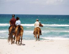 Sie reiten über einen langen, unberührten Sandstrand mit vielen Felsvorsprüngen und Wasserbecken. Je nach Zeit, Wetter und Laune unserer Pferde besteht die Möglichkeit, am Strand zu spielen. Die Pferde scheinen immer von den Wellen begeistert zu sein, die ihre Hufe kühlen.