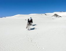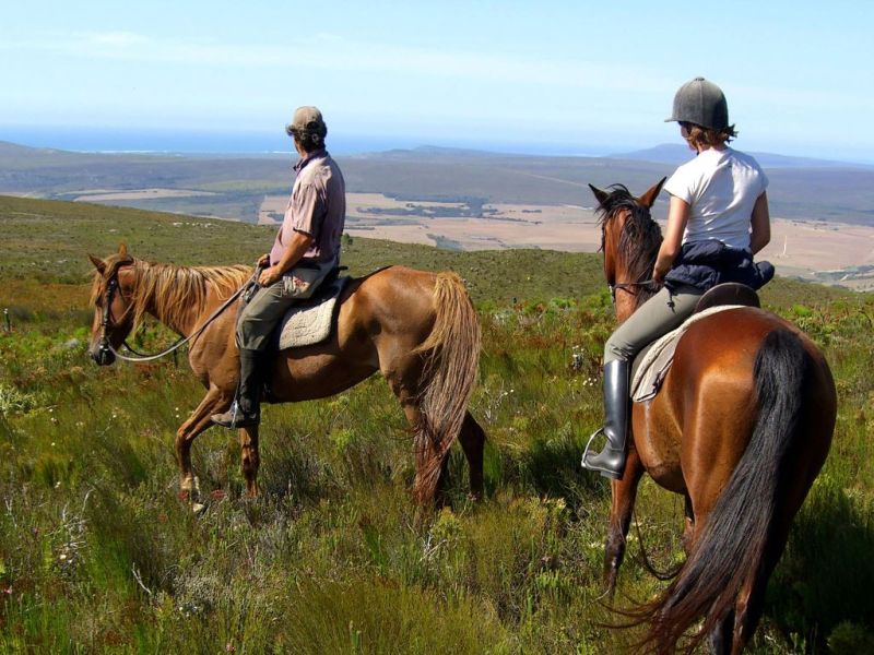 Von Duinefontein reiten Sie nach Pearly Beach wieder durch das Grootbos Fynbos Nature Reserve, jetzt in umgekehrter Richtung. Es geht weiter in westlicher Richtung durch den Bewuchs an der Küste und Sie durchqueren erneut die weitläufigen und fast surreal wirkenden Sanddünen, die Grys Dunes, von die Plaat. Es geht weiter durch das Walker Bay Nature Reserve zu den unberührten weißen Stränden des Walker Bay Wal-Schutzgebietes. Nach vielen Tagen an der Küste führt die Route ins Landesinnere durch die wunderschöne Fynbos-Vegetation. Von den Kuppen der Hügel haben Sie einen großartigen Panoramablick über die Region, die Sie in den vergangenen Tagen durchstreift haben. Die Aussicht reicht von der Küstenlinie bis zum Horizont, wo sich Erde und Himmel treffen. Abendessen und Übernachtung in der Whitewater Farm. Ca. 5 Stunden im Sattel.