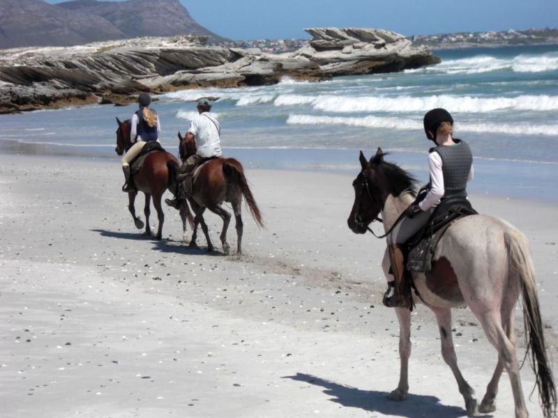 Am Morgen reiten Sie über den Mount Dyer hinunter zur Lagunenmündung des Uilskraal-Flusses. Weiter geht es in das Tiefland und den Kalkstein-Fynbos von Heidehof und Avilla, die im Rooi Strandveld liegen, und dann in Richtung Meer. Kurz vor dem Mittagessen erreichen Sie den Strand. Nach dem Mittagessen reiten Sie zum Pearly Beach entlang der offenen Küste und dem Strand innerhalb des Walker Bay Reserve. Die Höhepunkte sind der herrliche Berg-Fynbos, Galoppaden am Strand und die Ausblicke auf den Ozean.